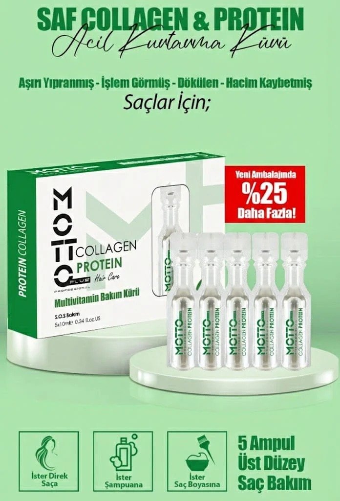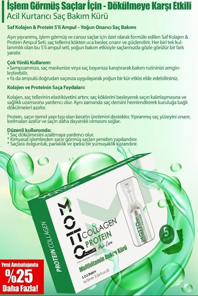 Aşırı yıpranmış, işlem görmüş ve dökülen saçlarınızı geride bırakın. Saf kolajen ve protein içeren özel formülüyle saç tellerinizi kökten uca besler, onarır ve güçlendirir.